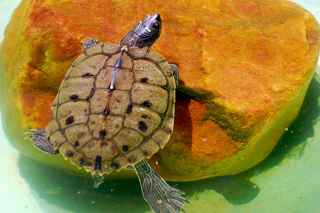 The summer between my sophomore and junior year in college, I acquired a Mississippi Map Turtle from a researcher in the lab I worked in at the University of Chicago. She had just had a child, and was afraid that the child would drink or splash or bathe in the Salmonella-infested waters of the turtle’s tank and get sick. I named the turtle “Schmenk the Turtle”. I don’t remember the origin of the word. I think “schmenk” was a nonsense word at the time that my friends and I used that sounded cool and was fun to say; apparently, it now means “a passive-aggressive sexually frustrated, penguin-shaped ho”, according to urbandictionary.com. At the end of the summer, my dad had the privilege of lugging Schmenk, Schmenk’s tank, and me back up to college, with Salmonella-infested water splashing in the back of our Chevy Suburban.