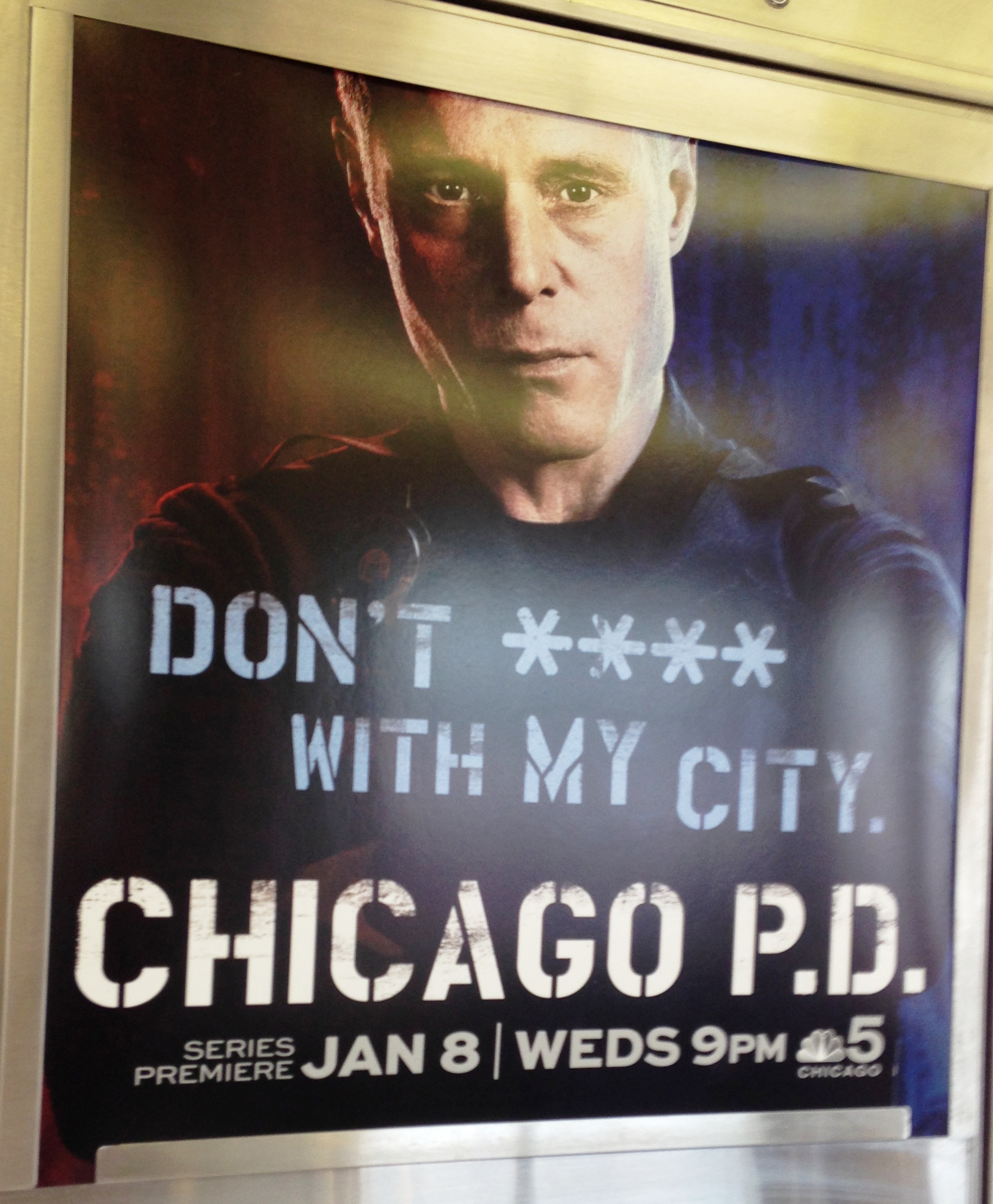 Sadly, the dramas that Dick Wolf produced to replace Law & Order have been pretty lame. I found Chicago Fire (not to be confused with Chicago Fire or The Great Chicago Fire—which Wisconsinites have learned, wasn’t that great) to be ho-hum (unlike Fox’s train wreck of a show, The Chicago Code, which was such a bad parody of Chicago politics, I couldn’t turn away). And you turned me off to Chicago P.D. before it even premiered. I get you were trying to be “edgy” with your ads plastered all over the CTA stating “Don’t **** with my city” (ooooh, you implied the use of a naughty word!), but what you don’t realize is that the cops in Chicago are often the ones who are ****ing with our city. Ironic.